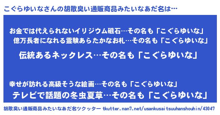 | 意味不明あだ名 | 『とにかく怪しいこぐらゆいな』 |