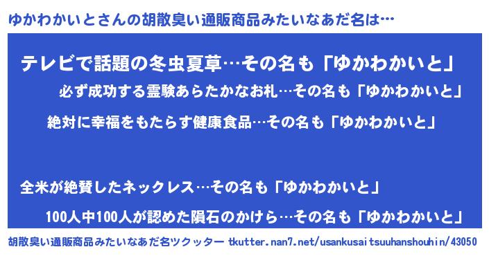| ヒーロー風カッコイイあだ名 | 『ネオユカワカイト』『炎刃騎士ユカ』 |