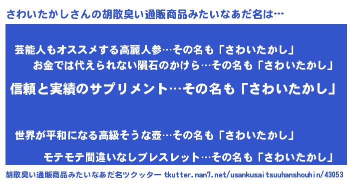 | 欧米人風あだ名 | 『ウサインさわいたかし』 |