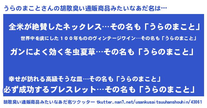 | 肩書あだ名 | 『うらのまこと上級大将』 |