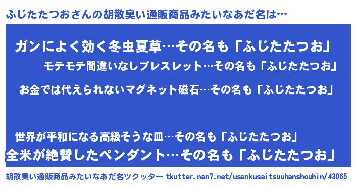 | 男性向けラノベタイトル風あだ名 | 『ノーゲーム・ノーフジタタツオ』 |