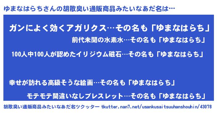 | ヘコむあだ名 | 『ゆまにゅー』『ゆまなはらち(爆)』 |