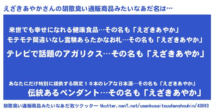 | ヘコむあだ名 | 『えざきあやか(苦笑)』『えざっ子』 |
