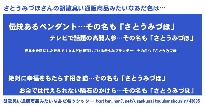| ヘコむあだ名 | 『さとぷりん』『さとうみづほ(笑)』 |