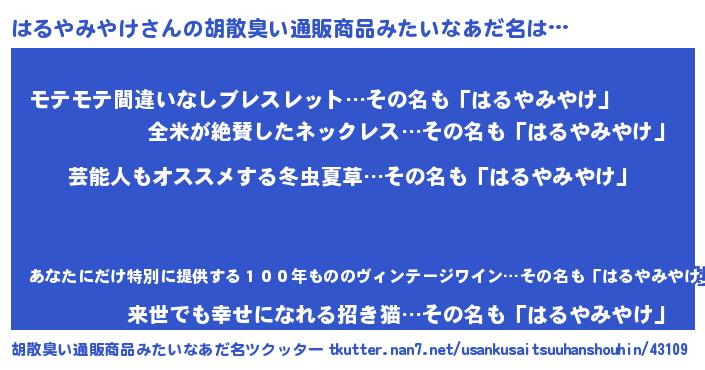はるやみやけさんの胡散臭い通販商品みたいなあだ名をツクッター!
