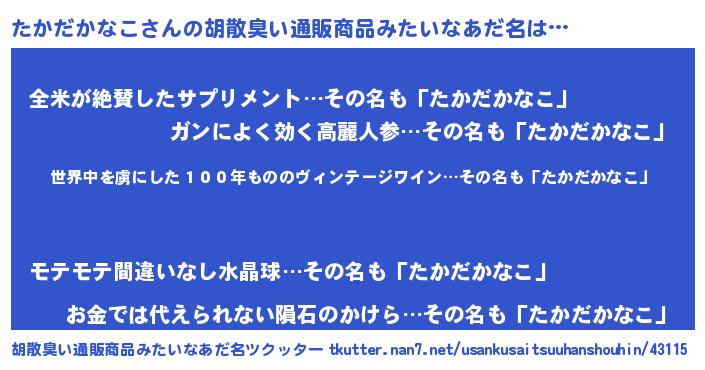 | 肩書あだ名 | 『たかだかなこ教官』『たかだかなこ塾長』 |