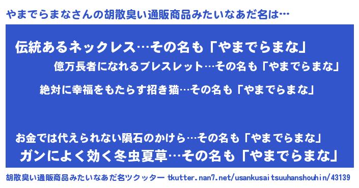 | ヘコむあだ名 | 『やまでらまな(笑)』『やまっぺ』 |