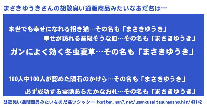 | ヘコむあだ名 | 『まさきゆうき(遠い目)』『まさにゅー』 |