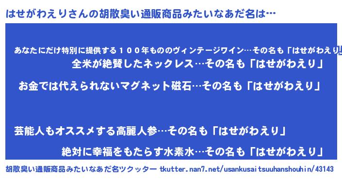 | ヘコむあだ名 | 『はせがわえり(笑)』『はせを』 |
