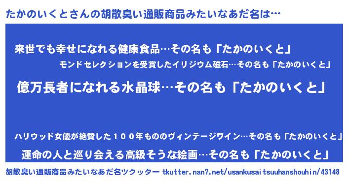 | ヘコむあだ名 | 『たかふぇ~』『たかのいくと(爆)』 |
