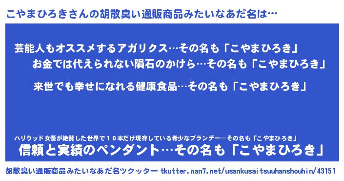 | ヘコむあだ名 | 『こやまひろき(爆)』『こやっちょ』 |