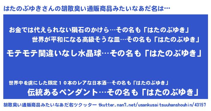 | 男性向けラノベタイトル風あだ名 | 『ハタノブユキアートオンライン』 |