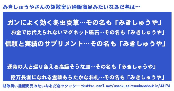 | 意味不明あだ名 | 『とにかく怪しいみきしゅうや』 |