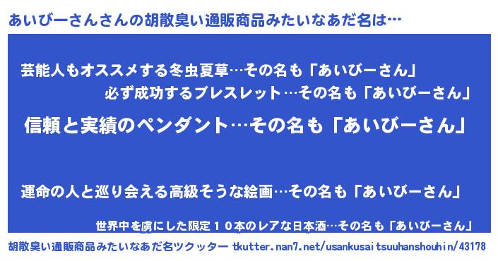 | 意味不明あだ名 | 『とにかく怪しいあいびーさん』 |