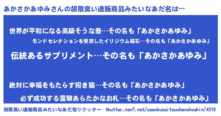 | 肩書あだ名 | 『あかさかあゆみ中佐』 |