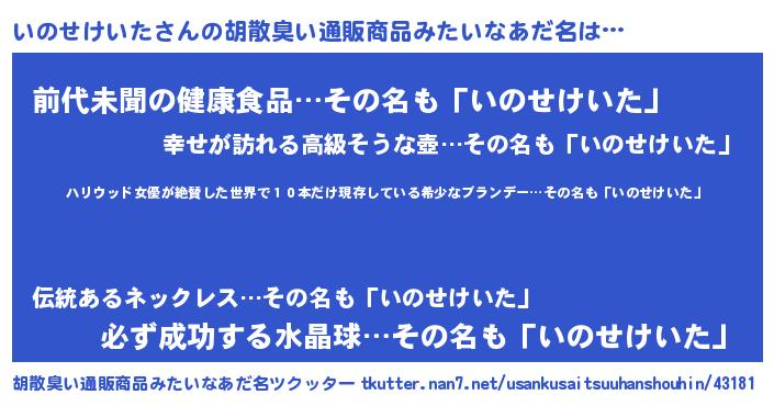 | ヘコむあだ名 | 『いのせけいた(遠い目)』『いのふぇ~』 |
