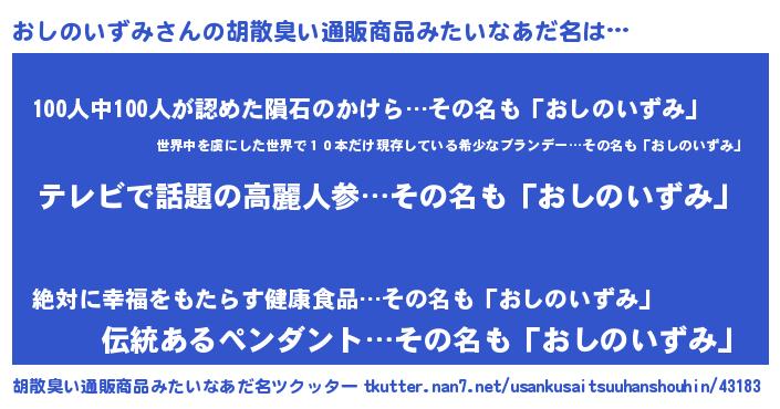 | 恥ずかしいあだ名 | 『オシノイズミデラックス』『おしちん』 |
