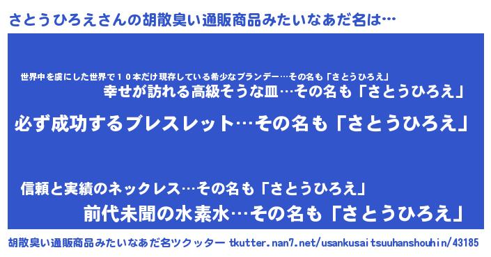 | ヘコむあだ名 | 『さとにー』『さとうひろえ(笑)』 |