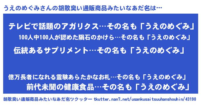 | 意味不明あだ名 | 『とにかく怪しいうえのめぐみ』 |