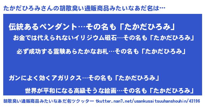 | 伝説のあだ名 | 『伝説のスナイパーたかだひろみ』 |