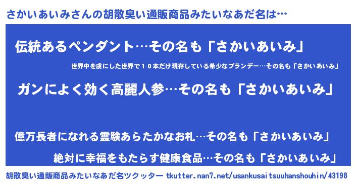 | 意味不明あだ名 | 『自称さかいあいみ』 |