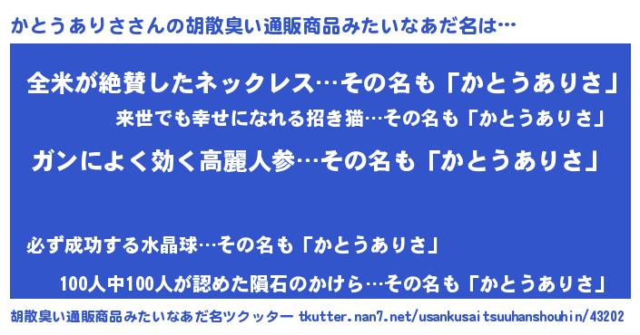 | 意味不明あだ名 | 『自称かとうありさ』 |