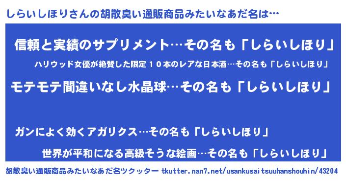 | ヘコむあだ名 | 『しらにゅー』『しらっちょ』『牛乳』 |