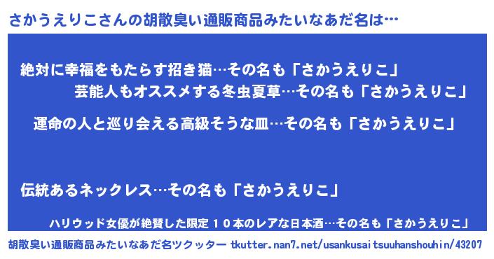 | 意味不明あだ名 | 『さかうえりこフォーエバー』 |