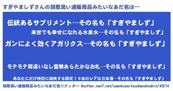 | 意味不明あだ名 | 『自称すぎやましず』 |