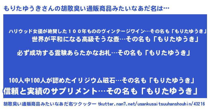 | 肩書あだ名 | 『もりたゆうき御曹司』 |