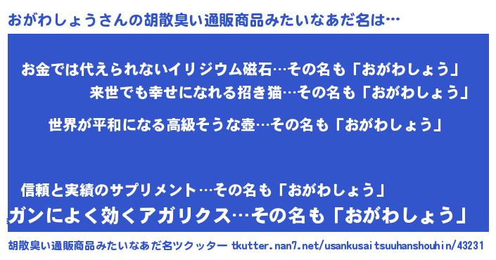 | ファンタジー風あだ名 | 『エターナルオガワショウー』 |