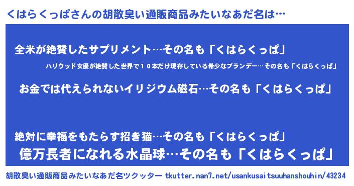 | ヒーロー風カッコイイあだ名 | 『慈愛の使者くはらくっぱ』 |