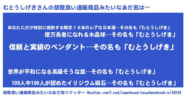 | 男性向けラノベタイトル風あだ名 | 『緋弾のムトウシゲキ』 |
