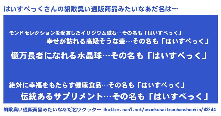 はいすぺっくさんの胡散臭い通販商品みたいなあだ名をツクッター!
