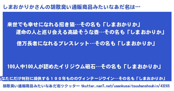 | ヘコむあだ名 | 『しまふぇ~』『しまおかりか(笑)』 |