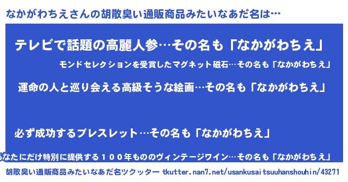| 意味不明あだ名 | 『なかがわちえフォーエバー』 |