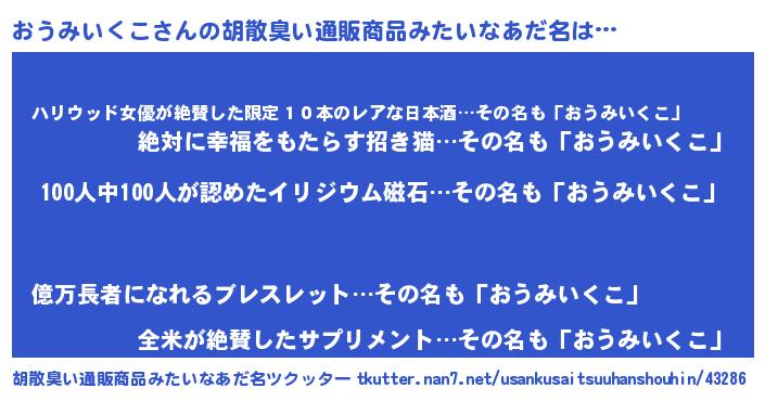 | ヘコむあだ名 | 『おう太郎』『おうみいくこ(笑)』 |