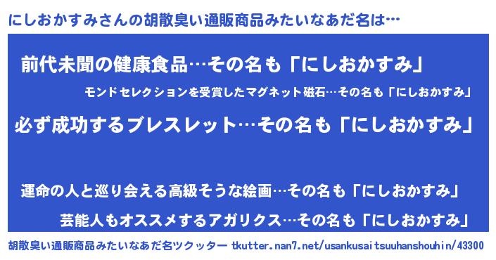 | ヘコむあだ名 | 『にしにー』『にしおかすみ(笑)』 |