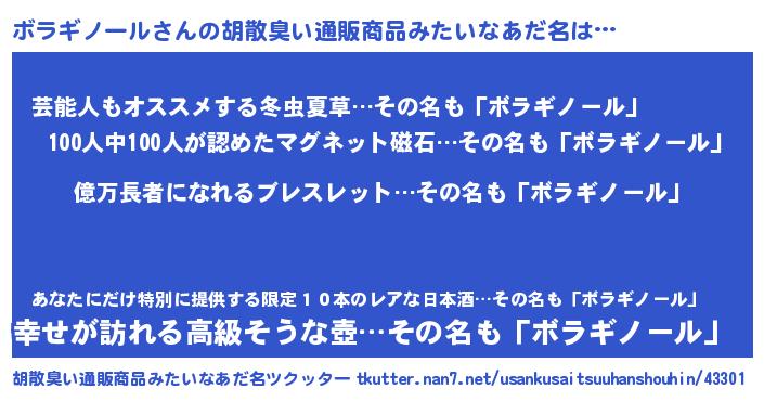 | ヘコむあだ名 | 『ボラにー』『酢こんぶ』『ボラお』 |