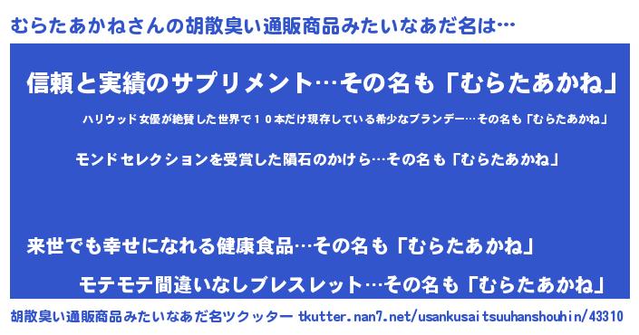 | 意味不明あだ名 | 『眠気覚ましガムむらたあかね味』 |