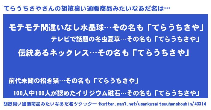 | ヘコむあだ名 | 『てらっ子』『てらもー』『なまこ酢』 |