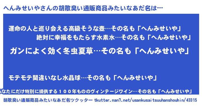 | 意味不明あだ名 | 『自称へんみせいや』 |