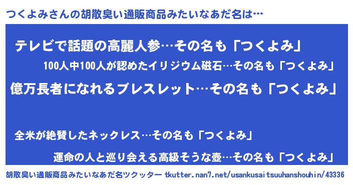 | ヒーロー風カッコイイあだ名 | 『スーパーツクヨミ』『黄金騎士ツク』 |
