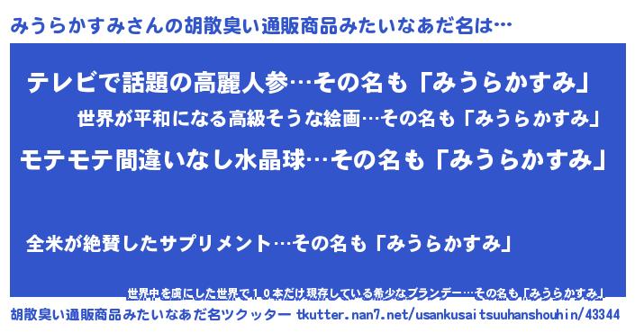 | 男性向けラノベタイトル風あだ名 | 『転生したらみうらかすみだった件』 |