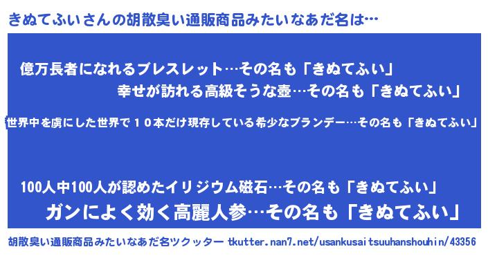 | 欧米人風あだ名 | 『トリンドルきぬてふい』 |