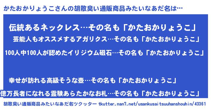 | ポケモン風あだ名 | 『カックウザ』『ヒカタオカリョウコ』 |