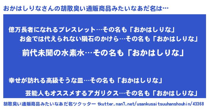 | 意味不明あだ名 | 『永久保存おかはしりな』 |