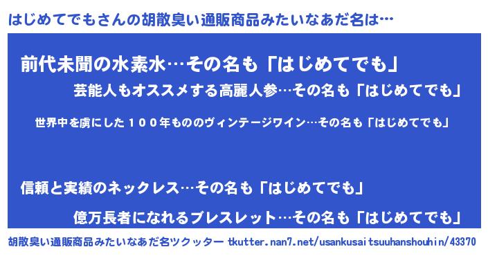 | 意味不明あだ名 | 『住所不定無職はじめてでも(3歳)』 |