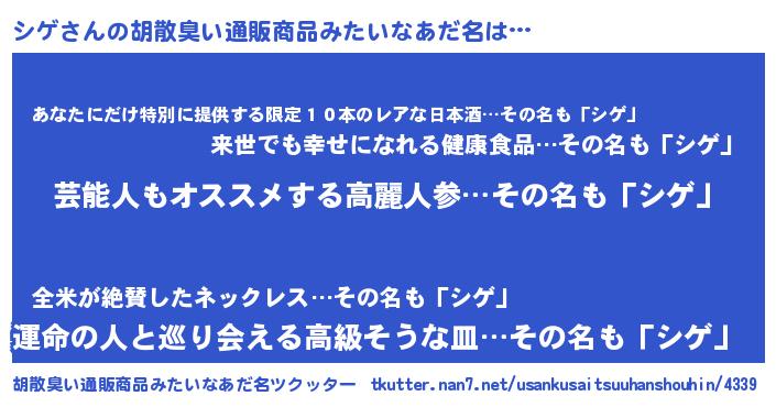 | ピコ太郎風あだ名 | 『ピシ一郎』『ピコシ郎』『シゲ六郎』 |