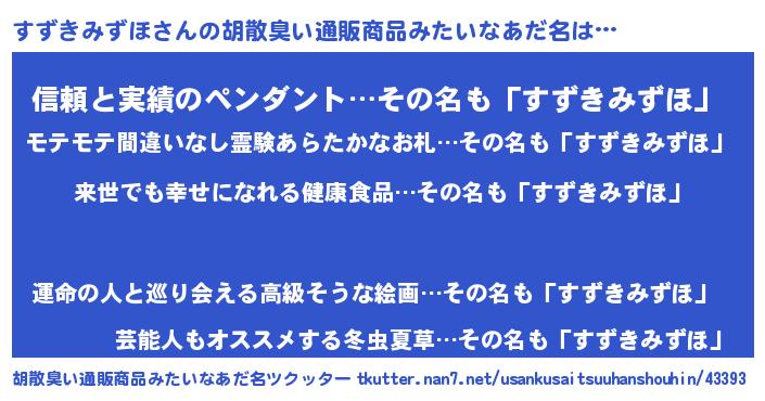 | 意味不明あだ名 | 『永久保存すずきみずほ』 |